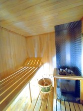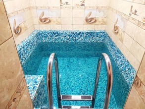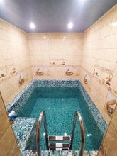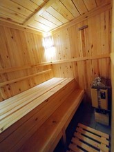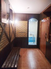 В помещении приятный интерьер с яркими акцентами, мягкая мебель и современная аппаратура. Для банных процедур есть финская сауна вместимостью до 6 человек с удобными деревянными лежаками. Охладиться после жаркого пара вы сможете в душевой. За дополнительную плату администратор предоставит вам ароматные веники, полотенца, халаты и тапочки.